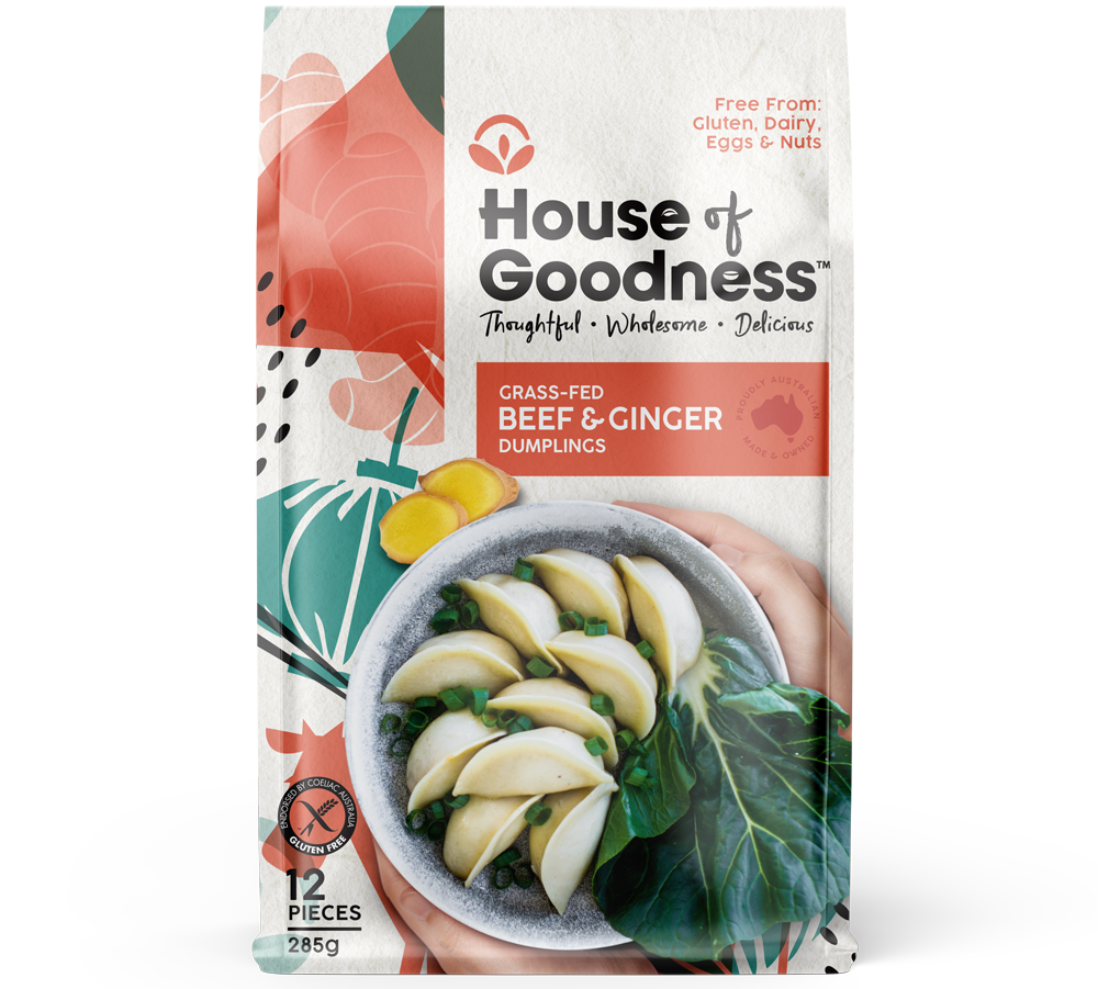 Ingredients: Grass-Fed Beef, Cabbage, Filtered Water, Rice Flour, Onion, Tapioca Flour, Glutinous Rice Flour, Shallot, Sunflower Oil, Millet Flour, Xanthan Gum, Sea Salt, Ginger, Potato Starch, Gluten-Free Soy Sauce, Pepper.