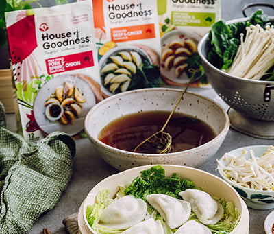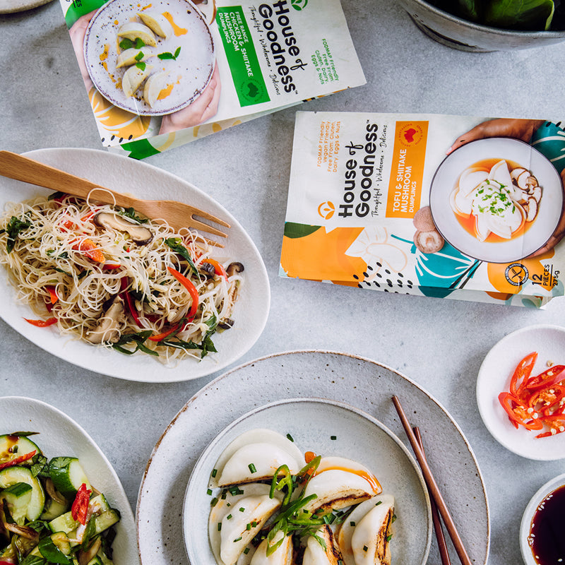Ingredients (FODMAP Friendly): Filtered Water, Rice Flour, Cabbage, Organic Tofu, Corn, Shiitake Mushroom, Black Fungus, Tapioca Flour, Glutinous Rice Flour, Millet Flour, Sunflower Oil, Gluten-Free Soy Sauce, Xanthan Gum, Potato Starch, Sea Salt, Pepper.