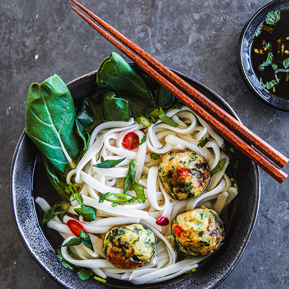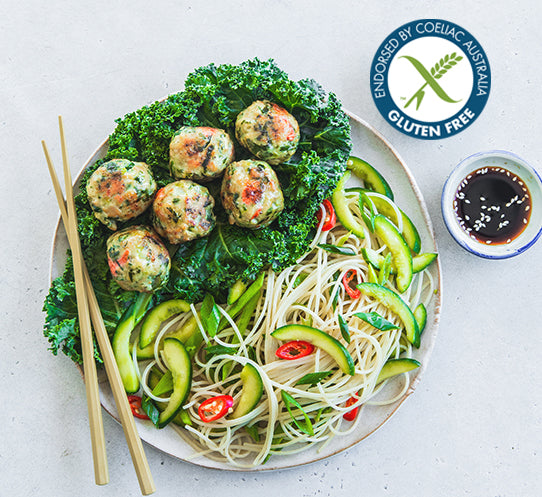 Tasty Gluten Free Asian Meatball range, simply reheat and serve. Australia first gluten free and egg free fresh hand-pulled style noodles with an aromatic sauce.